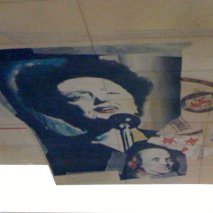 Of course, rue Lafayette was named for the celebrated Gilbert du Motier, marquis de Lafayette, known among Americans as perhaps the second-greatest hero of our revolution. That’s not why I’ve highlighted Chaussée d’Antin on my little “An American in the Métro” tour, though. One notable feature of the Chaussée d’Antin station is that the ceilings are beautifully painted above the tracks at both the line 7 and line 9 platforms. On the line 9 platforms, the painting features portraits of various famous historical and cultural figures. If you take a close look at the photograph to the right, you’ll notice the portrait—not of Lafayette—but of another famous hero from that era. It’s right there … just below Édith Piaf … Benjamin Franklin, American ambassador to the court of Louis XVI from 1776 to 1785. I wonder what Ol’ Ben would think about being under Édith Piaf … no, wait! On second thought, don’t answer that!